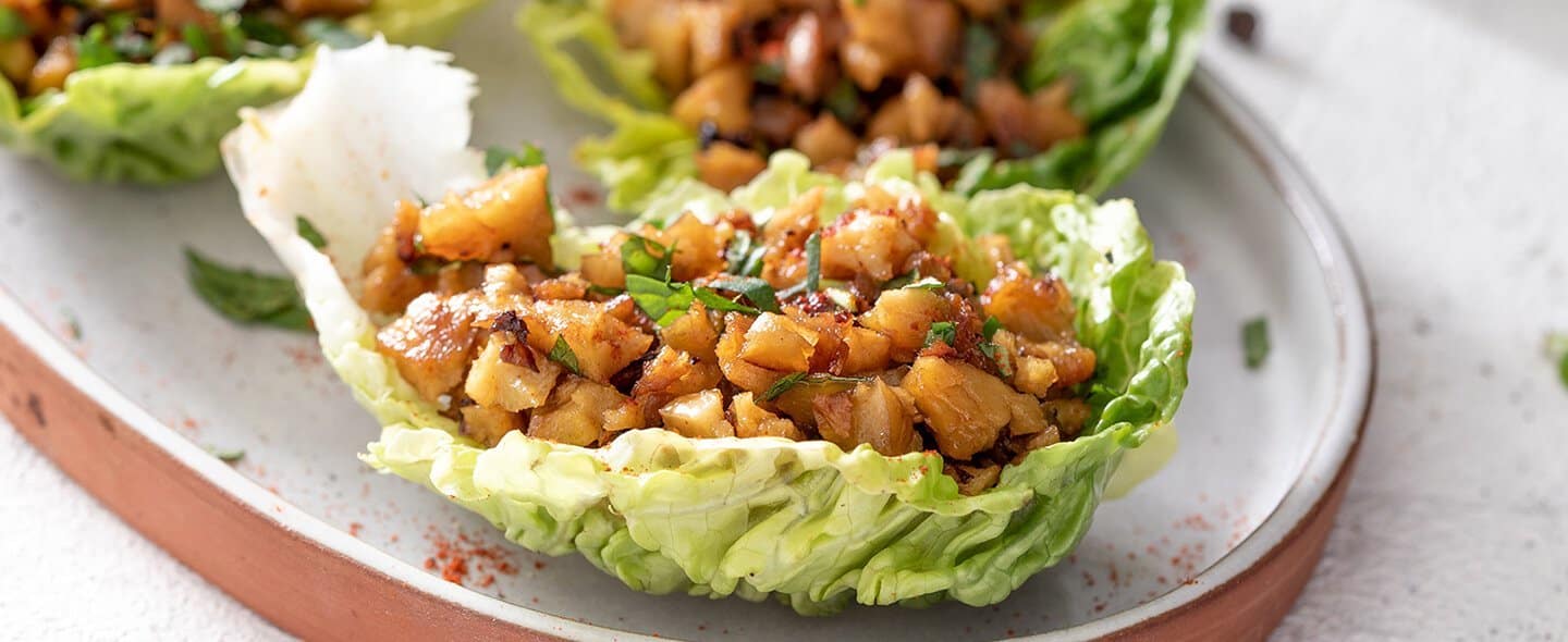 Cestini di lattuga con trito di seitan speziato alla menta